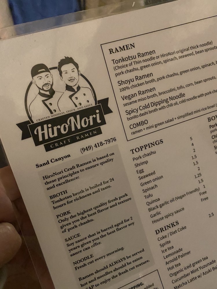 Welcome to HiroNori Craft Ramen - Sand Canyon, a ramen haven located at 6626 Irvine Center Dr, Irvine, CA. This casual yet hip eatery offers a delightful menu that beautifully showcases traditional and innovative dishes. Their ramen selection features the umami-rich Shoyu Ramen, a Chicken and Soy Sauce broth paired with artisan noodles, and the spicy sensation of Spicy Cold Dipping Noodles, cooked to perfection.
